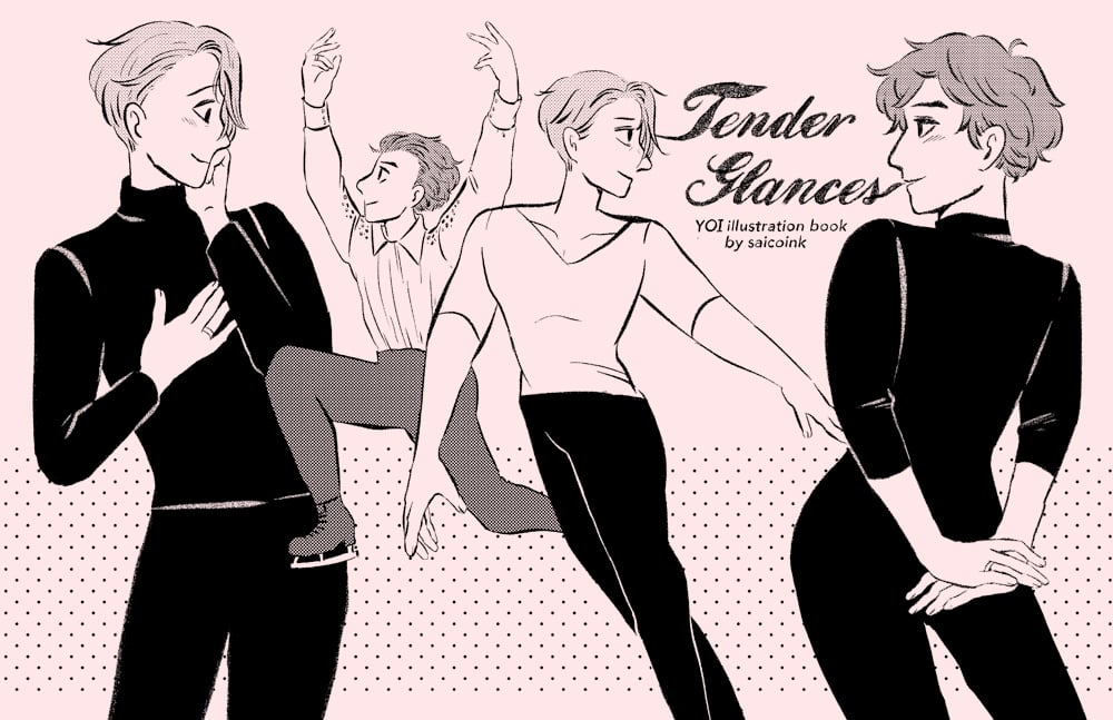 Yuri!!! on Ice fan illustration book filled with ~*Tender Glances*~ between Yuuri and Victor. 40+ illustrations, mostly new drawings with some reprints from web. Includes a short freetalk at the end.